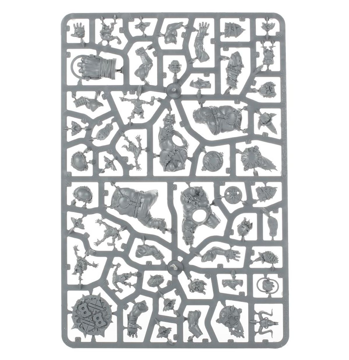 This multipart plastic kit contains all the components you'll need to build the Fire Mountain Gut Busters, an Ogre team for use in games of Blood Bowl, containing 4 Ogres (1 of which can be built as a Runt Punter), and 12 Gnoblars with interchangeable heads! You'll also find a roster sheet, transfers, 2 turn counters and 2 coins, 4 Ogre-themed balls, and a mix of 14x 25mm Citadel Round bases and 4x 32mm Citadel Round Blood Bowl bases.