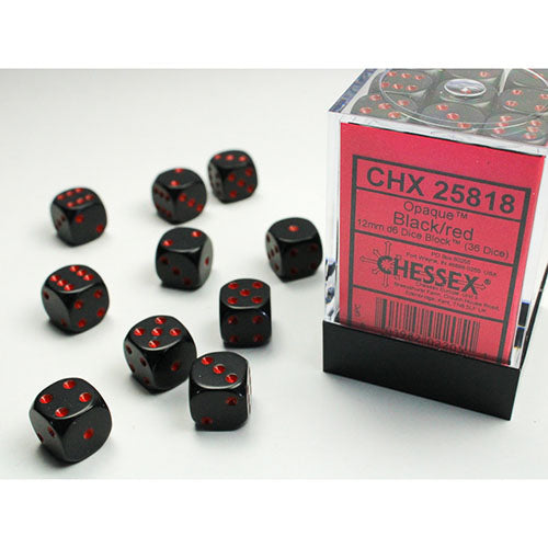Chessex - Opaque 12mm D6 Dice Block - Black w/Red