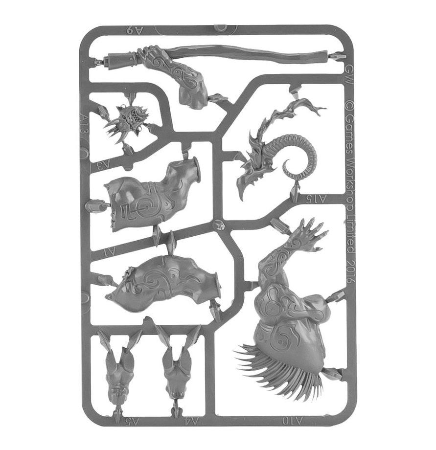 This multi-part plastic kit contains the 16 components necessary to assemble a hulking, imposing Ogroid Thaumaturge. Standing at almost twice the height of a Kairic Acolyte, and covered in sculpted sigils, he’s a model who can be easily painted to represent the incredible arcane energy within. He’s armed with a thaumaturge staff, topped with a horned skull emitting magical flame.