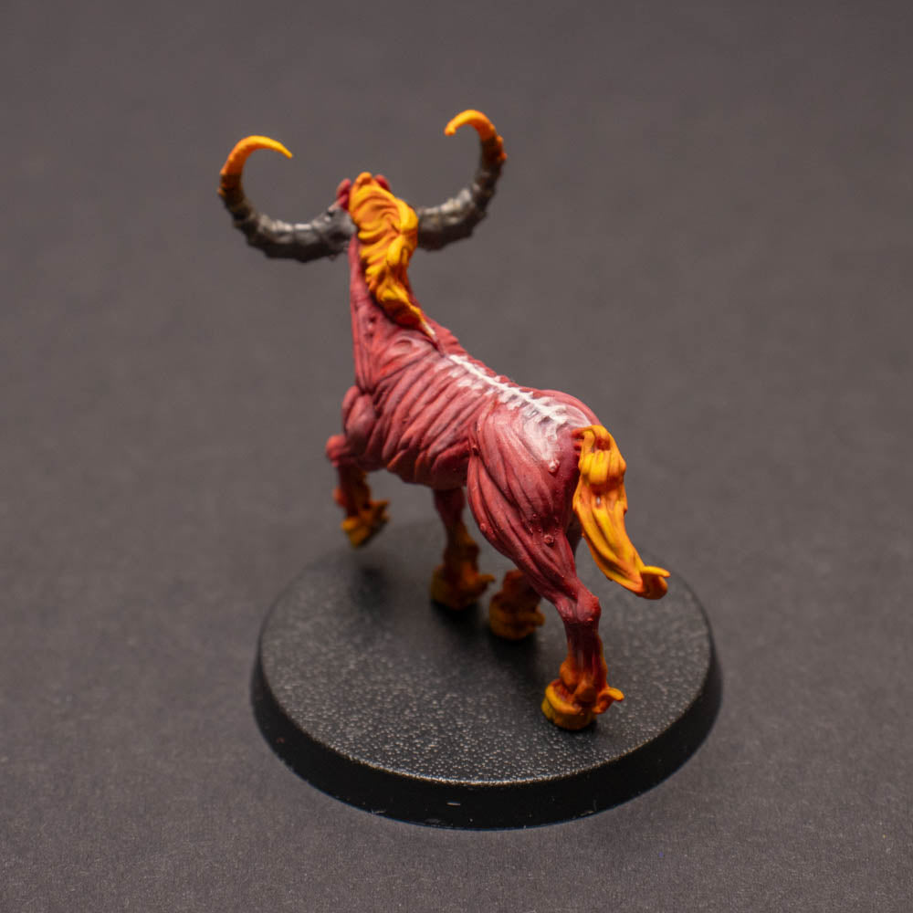 A painted, tabletop ready Dread Steed on a 40mm plastic base