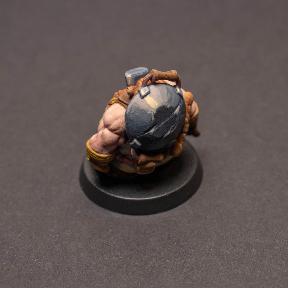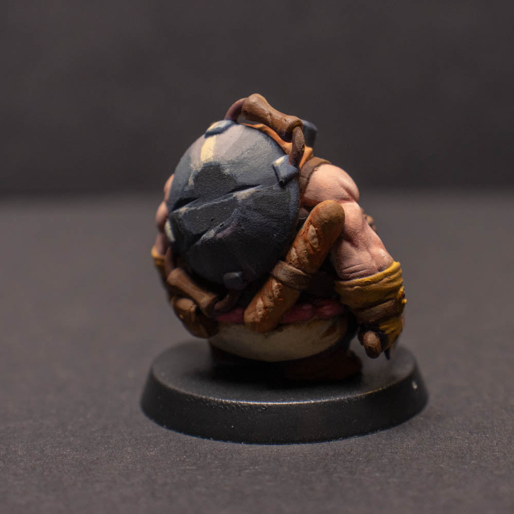A painted, tabletop ready Dwarven Warrior Chef on a 32mm plastic base
