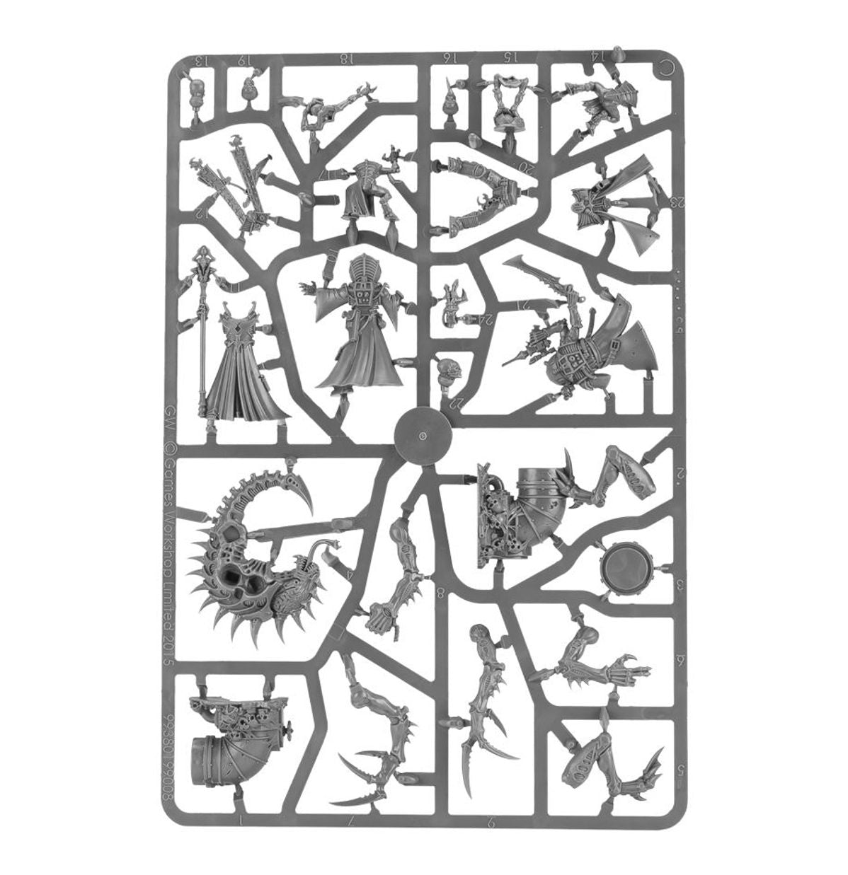 This box contains all the parts necessary to assemble the Broodcoven, a formation found in Codex: Genestealer Cults. You’ll receive a Patriarch, a Primus armed with needle pistol, bonesword and toxin injector, and a Magus, armed with autopistol and force stave and including 2 Genestealer Familiars – a charismatic and deadly combination of Genestealer Cults miniatures.