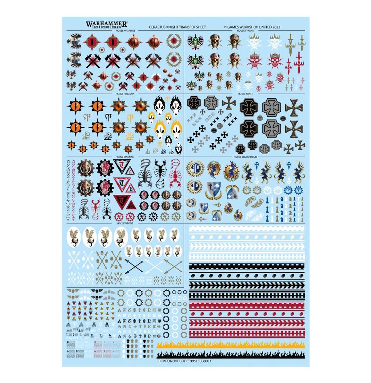 This kit comprises 208 plastic components, and comes with a Citadel 170x109mm Oval Base. It also includes an Age of Darkness Cerastus Transfer Knight Sheet, containing 517 optional markings and icons for the Knight Households of the Horus Heresy. This miniature is supplied unpainted and requires assembly – we recommend using Citadel Plastic Glue and Citadel paints.