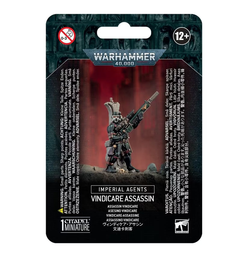 This multipart plastic kit builds a Vindicare Assassin, an eagle-eyed Imperial Agent deployed to pick off enemies of the Imperium. Clad in a stealth suit and spy mask, the Vindicare is a patient killer armed with an exitus rifle and pistol, as well as a combat blade and a selection of specialist rounds strapped to their limbs. They can take out even the toughest targets at range, before the enemy even knows what's hit them.
