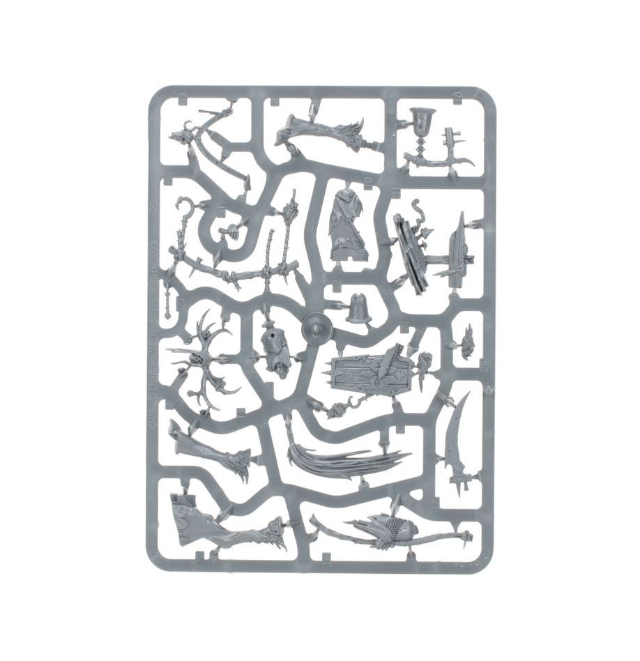 This multipart plastic kit builds one sinister and pestilent Harbinger of Decay, a heavily armoured Priest for your Maggotkin of Nurgle army, mounted on a boil-infected daemonic steed. Armed with a grim rotsword, and either a plague scythe or doom bell, they are well-equipped to mix it up in the front lines. You'll also find three distinct head options so you can customise it to match your army's aesthetic.