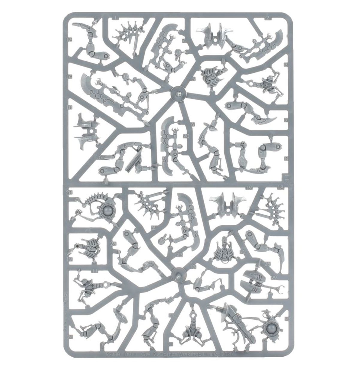 Striding forward in a rush of ungainly steps, their weaponised limbs sweeping in a whirlwind of gore, Skorpekh Destroyers feed their need to kill whenever they are unleashed upon the battlefield. Nothing else can override the hard-wired desire to kill that empowers these deranged Necrons.