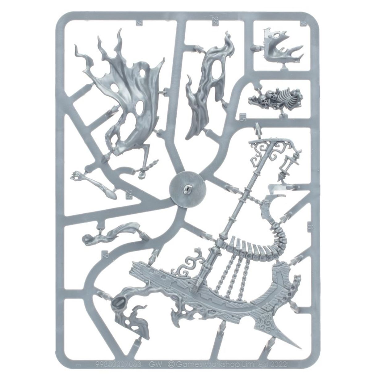 This multipart plastic kit builds one Awlrach the Drowner, a unique Hero and Totem for Nighthaunt armies. Propelling his odious, decaying skiff with a deathwood oar, this ghastly figure offers a tremendous boost to his army's mobility by delivering units across the battlefield. He’s also a worthy painting challenge, loaded with grisly nautical details and a variety of textures to experiment with, from rusted iron and rotting wood to vengeful, ethereal spirits.