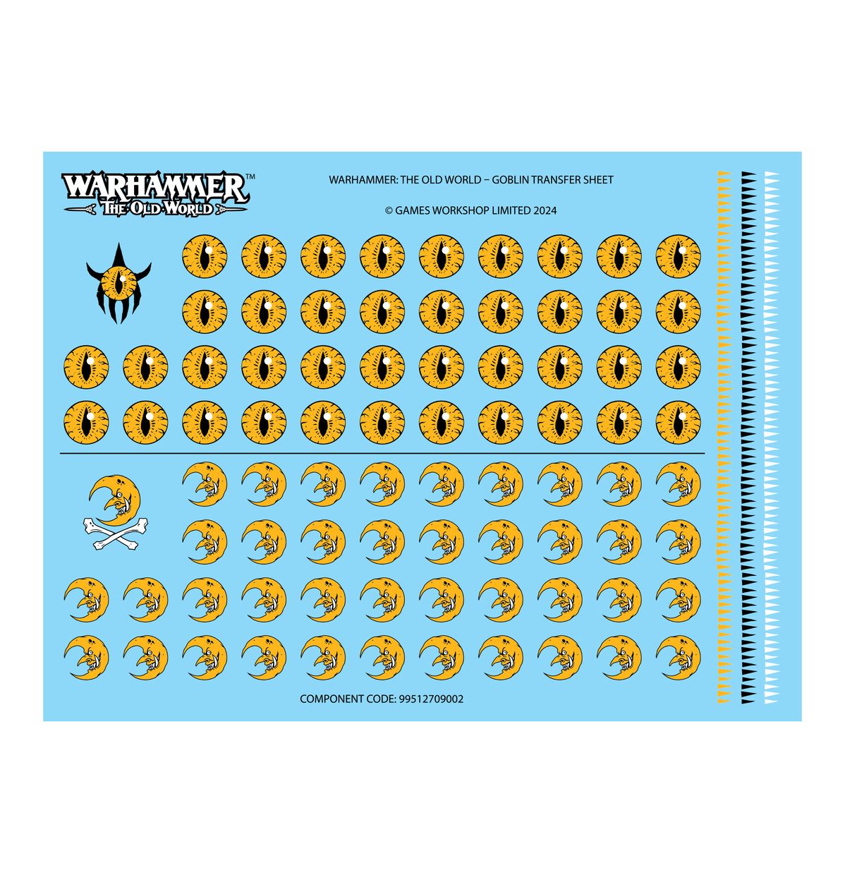 This kit contains 260 plastic components and 16x Citadel 25x50mm Rectanglular Bases. Also included is a Warhammer: The Old World Goblin transfer sheet, with 84 transfers to decorate your army. These miniatures are supplied unassembled and unpainted – we recommend using Citadel Plastic Glue and Citadel Colour paints.