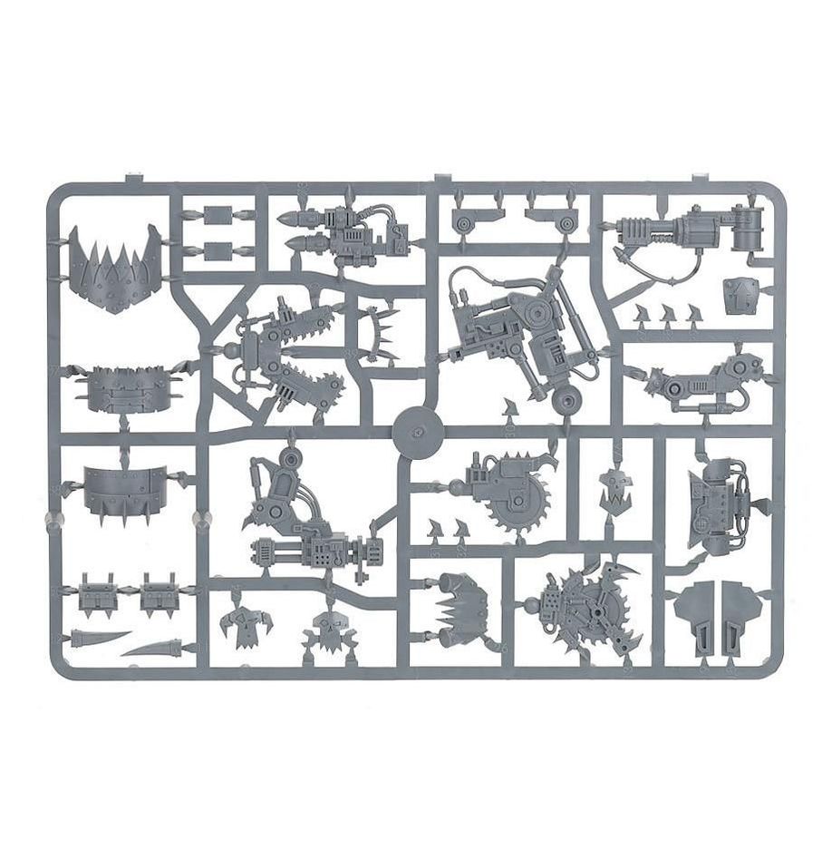 This box set contains one multi-part plastic Ork Deff Dread. This 86-piece set includes: two cockpit sights, 10 different glyphs, five different close combat weapons, two big shootas, two rokkits, two kustom blastas, a skorcha, and other assembly options. Model supplied with a 60mm round base.
