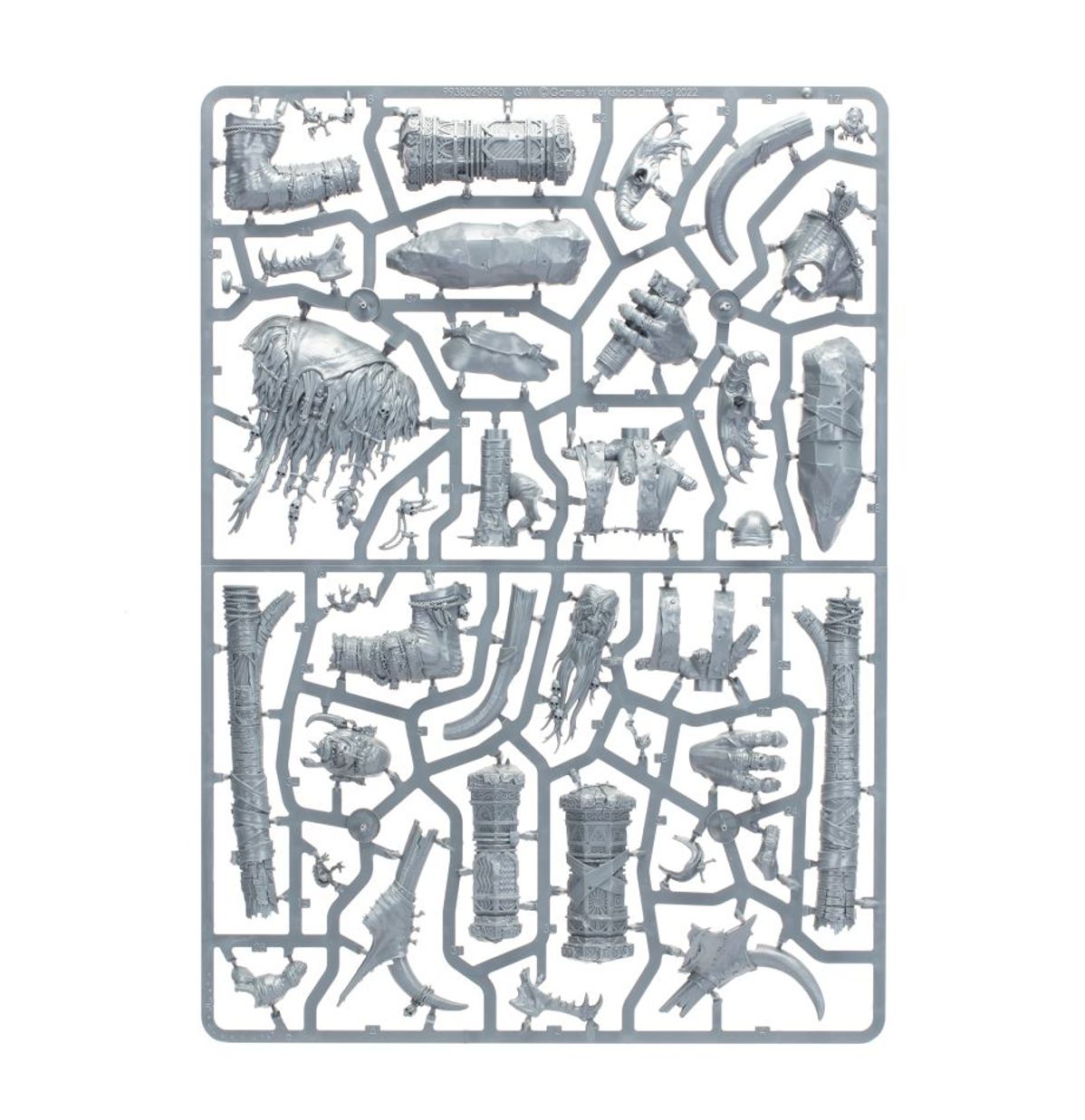 This multipart plastic kit builds King Brodd, the undisputed leader of the Mega-Gargants. This massive miniature towers over almost anything on the battlefield, and makes for both an awe-inspiring centrepiece and a truly colossal painting project. King Brodd is covered in incredible details, such as the servile creepers that perch on his shoulders, the peeling bark of his huge tree-trunk club, and the looted crowns of mortal rulers worn as rings around his huge fingers. Adorned with a draconic skull-helm and massive tusk-pauldrons, King Brodd overshadows even his fellow Mega-Gargants – a true heir to the might of Behemat. Plus, the kit includes tons of cosmetic bits and bobs which you can use to customise Brodd's giant-sized subjects.
