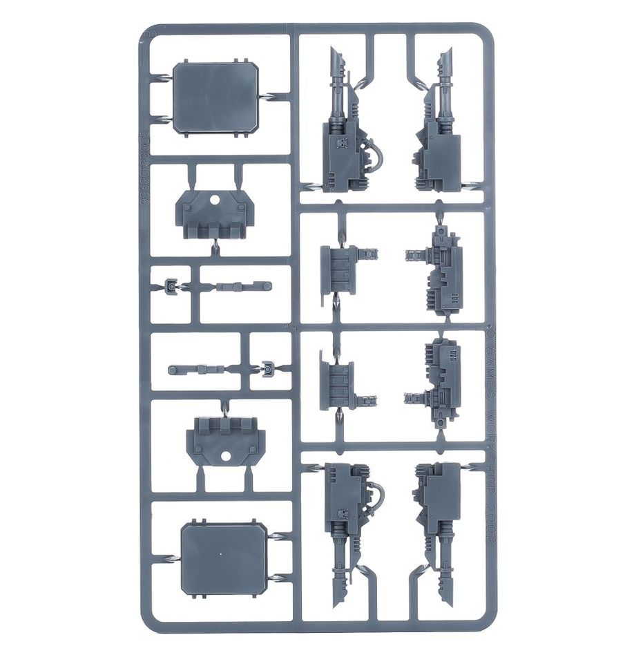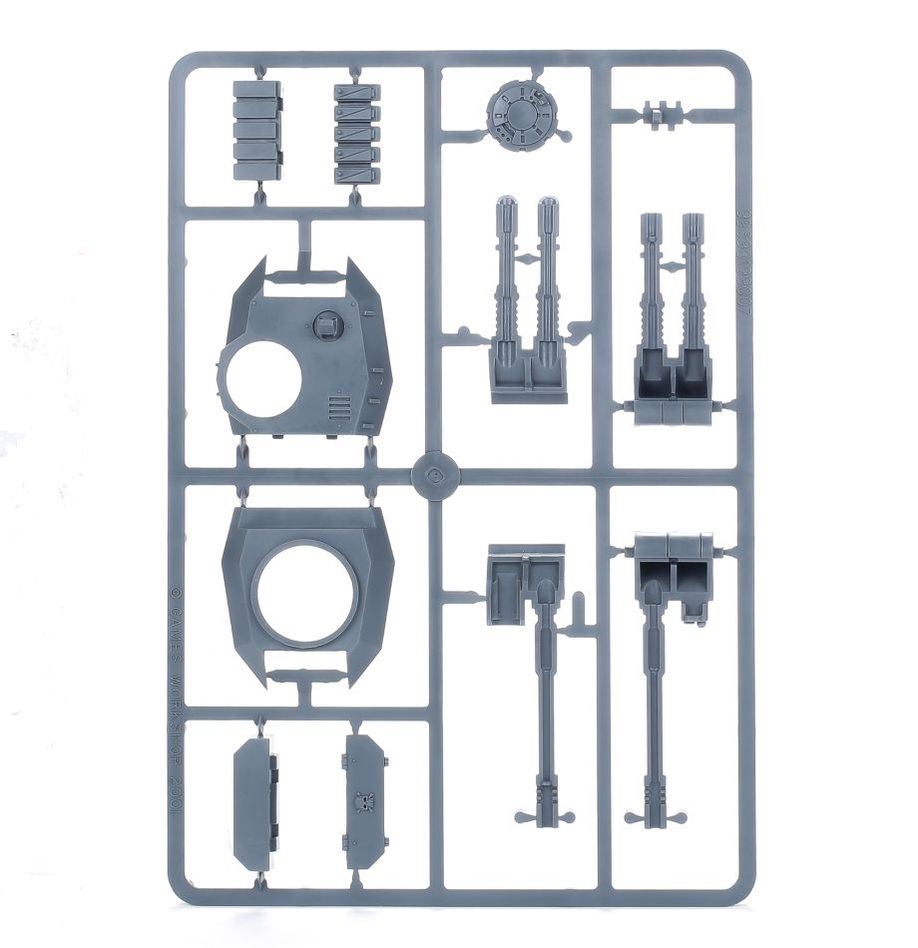 Based upon the Rhino chassis, the Predator sacrifices transport capacity for improved frontal armour and a heavy turret-mounted armament. With this kit you can build a Predator Annihilator armed with turret-mounted twin-linked lascannon. You have the option of adding two sponson-mounted heavy bolters or two sponson-mounted lascannons. Also included are an optional storm bolter and hunter-killer missile. Alternatively, this model may be built as a Predator Destructor using the included autocannon.