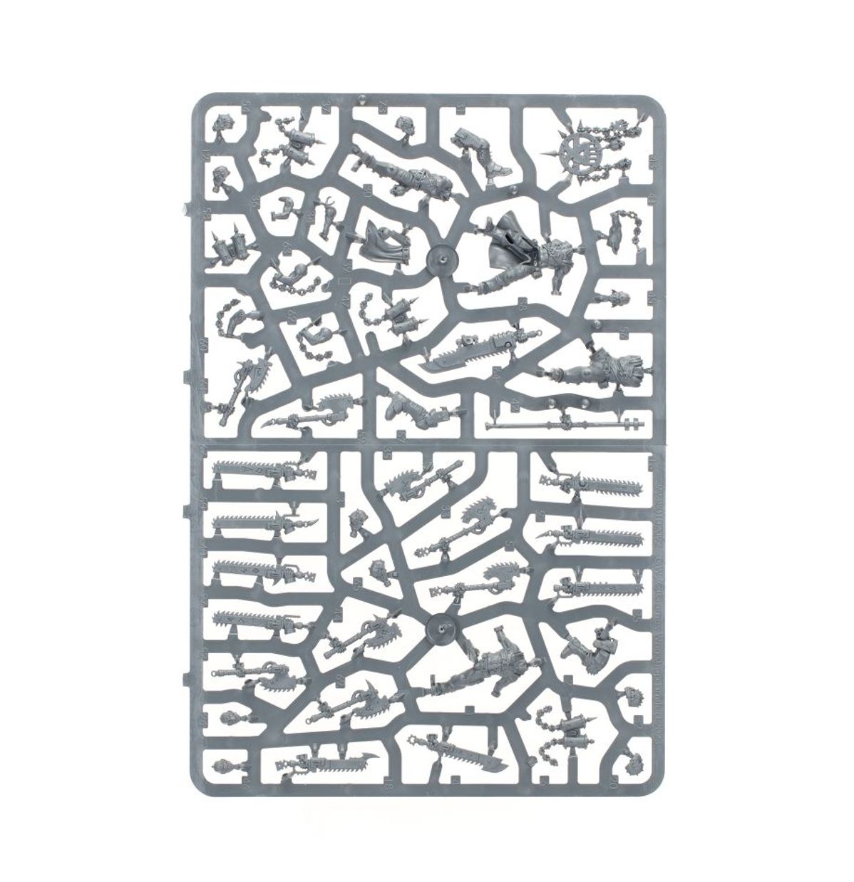 This kit comprises 96 plastic components, and is supplied with a Citadel 40mm Round Base and 10x Citadel 28.5mm Round Bases. Also included is a World Eaters Transfer Sheet, with 200 transfers featuring Khornate symbols, runic tattoos, eight-pointed stars, skulls, and variations on the World Eaters Legion icon. These miniatures are supplied unpainted and require assembly